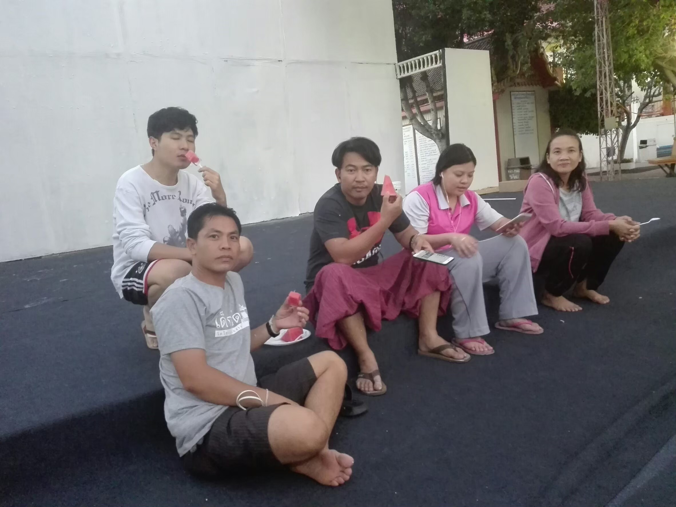 That morning, we chose to wear our team shirts bearing the words “Dek Wat” (Temple Kids). Although we served in the role of teachers, we were living under the shelter of Buddhism, using the temple grounds as both our residence and workplace. Referring to ourselves as “Dek Wat” reflected humility, closeness, and a sincere sense of belonging to the temple community.