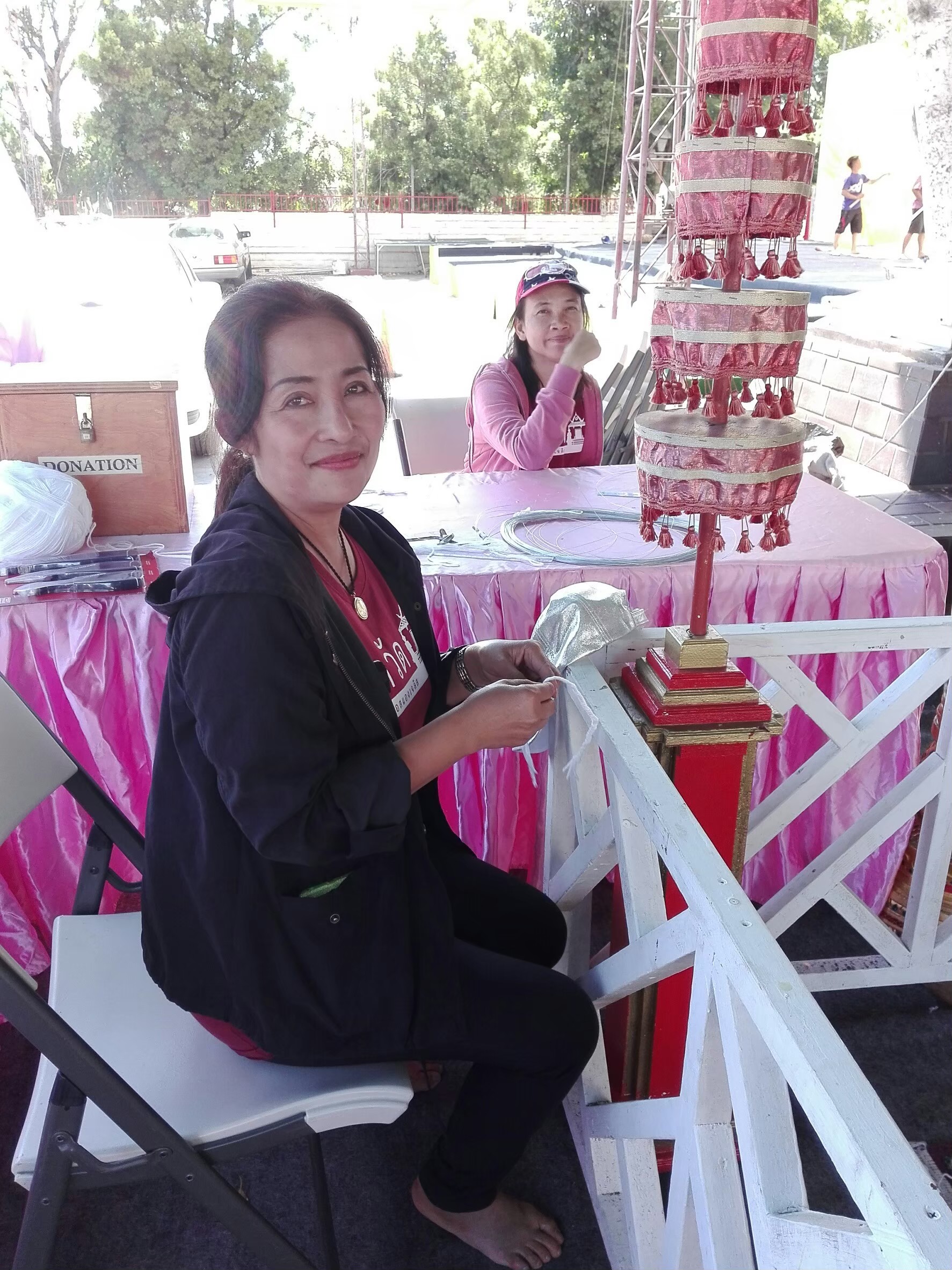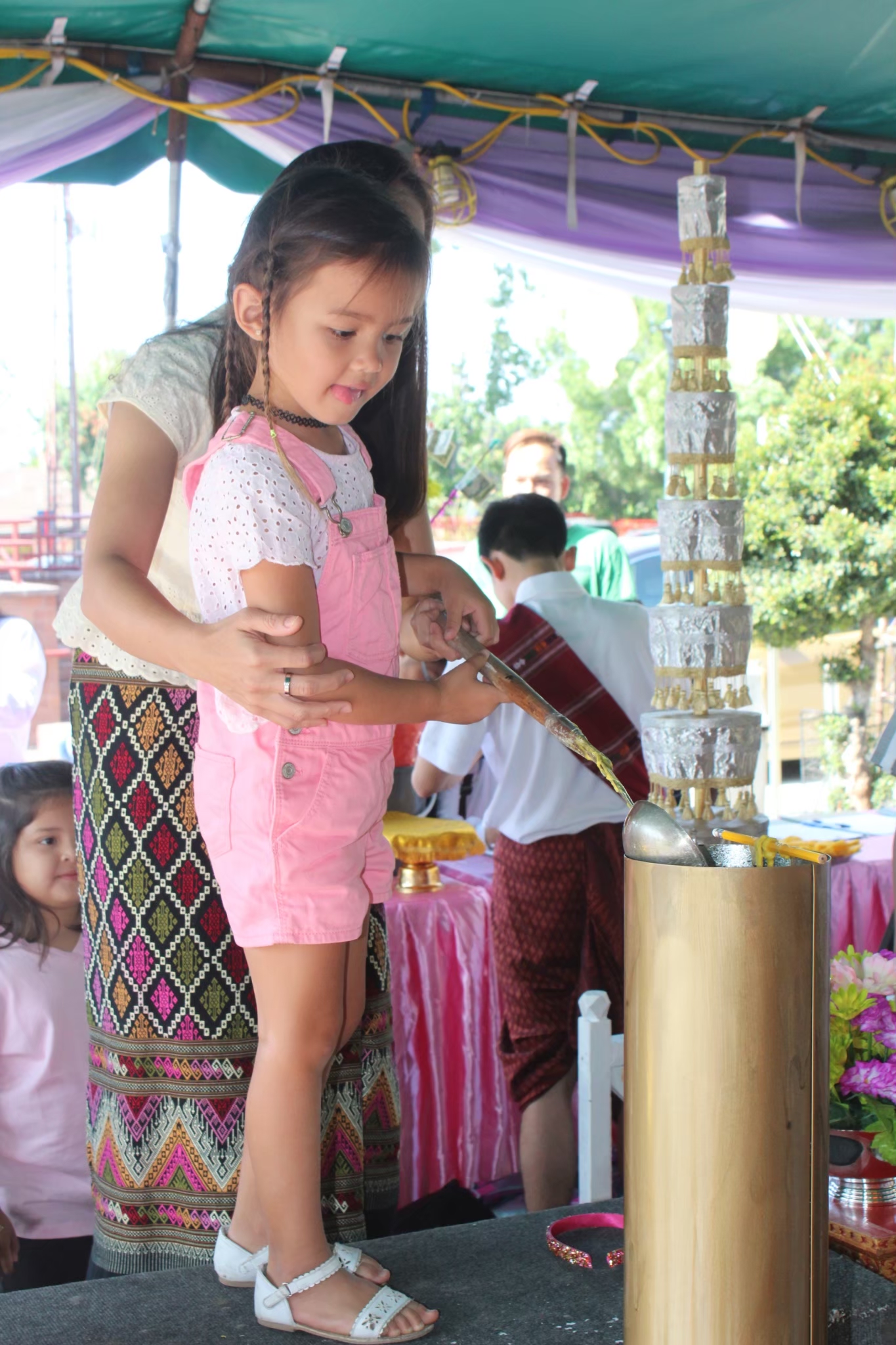 We traveled to The Original Los Angeles Flower Market, a large and vibrant flower market in the heart of Los Angeles, filled with colors, activity, and a wide variety of flowers. Helping to select flowers, carry them, and prepare materials for the ceremony allowed me to experience firsthand the behind-the-scenes work of the Thai temple and Sunday school abroad.